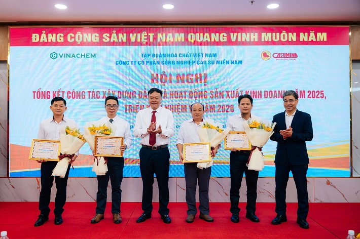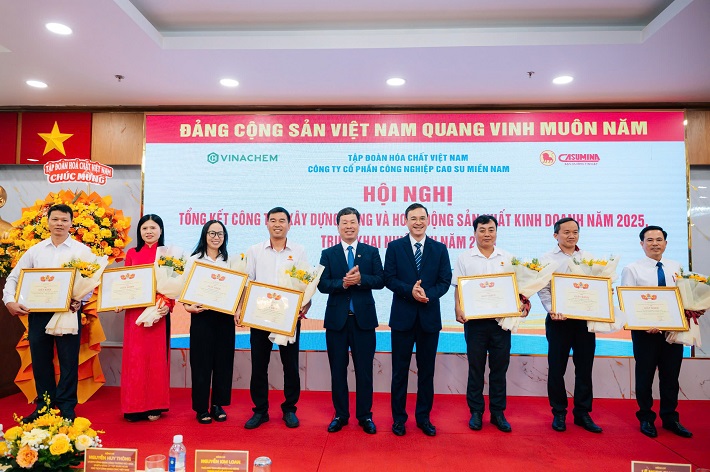 Năm 2025, Công ty CP Công nghiệp Cao su Miền Nam (Casumina) được Tập đoàn Hóa chất Việt Nam vinh danh trong Top 5 đơn vị có doanh thu cao nhất, ghi nhận kết quả sản xuất kinh doanh tích cực và nỗ lực mở rộng thị trường.