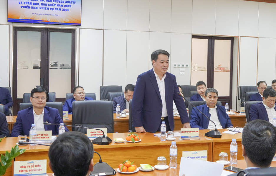 Chiều ngày 26/01/2026, tại Hà Nội, Tập đoàn Hóa chất Việt Nam (VINACHEM) phối hợp với Tổng công ty Đường sắt Việt Nam (VNR) tổ chức Hội nghị tổng kết công tác vận chuyển apatit, phân bón, hóa chất năm 2025 và triển khai nhiệm vụ năm 2026.