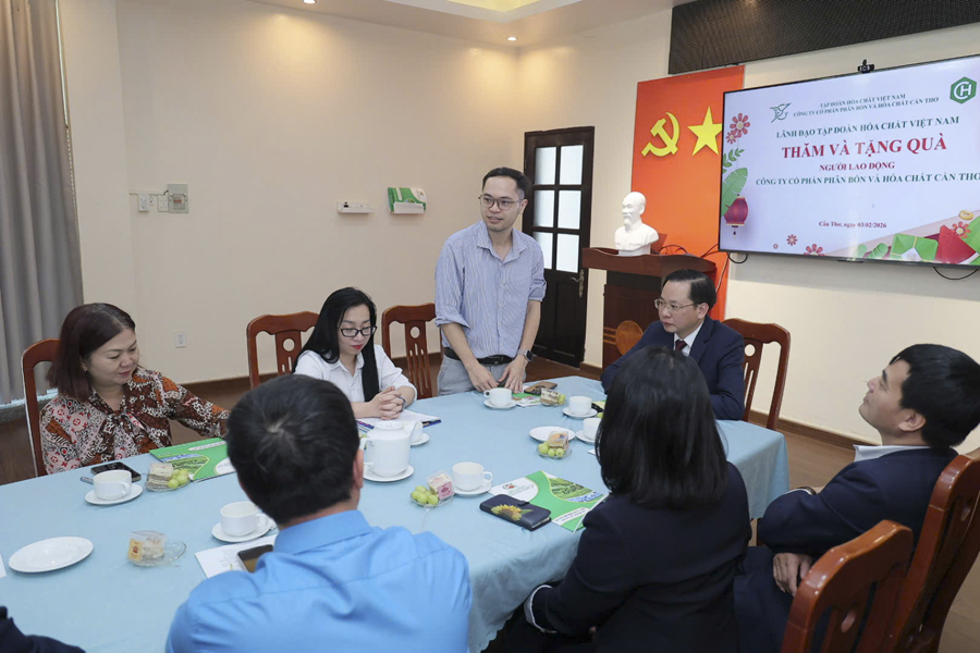 Ngày 03/02/2026, đoàn công tác của Tập đoàn Hóa chất Việt Nam đã đến thăm, làm việc và chúc Tết Công ty CP Phân bón và Hóa chất Cần Thơ nhân dịp Xuân Bính Ngọ 2026 và chào mừng 96 năm thành lập Đảng Cộng sản Việt Nam.