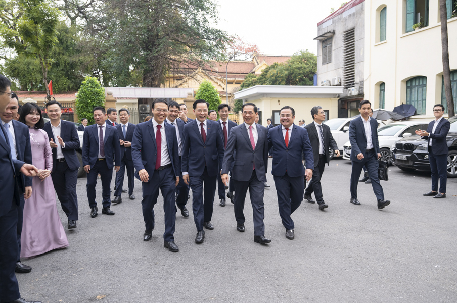 Đón tiếp đoàn có đồng chí Phùng Quang Hiệp, Ủy viên Ban Chấp hành Đảng bộ Chính phủ, Bí thư Đảng ủy, Chủ tịch Hội đồng thành viên; đồng chí Nguyễn Hữu Tú, Phó Bí thư Đảng ủy, Thành viên Hội đồng thành viên, Tổng Giám đốc; cùng các đồng chí trong Ban Thường vụ Đảng ủy, Hội đồng thành viên, Ban Tổng Giám đốc, lãnh đạo các ban chuyên môn, Văn phòng Tập đoàn.