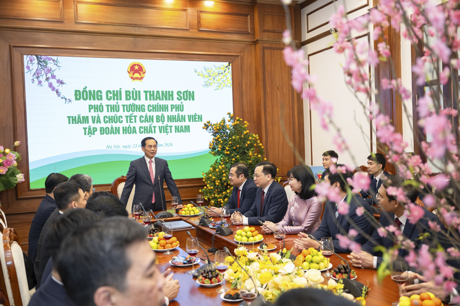 Trong không khí phấn khởi những ngày đầu Xuân Bính Ngọ 2026, chiều ngày 23/02/2026, đồng chí Bùi Thanh Sơn - Phó Thủ tướng Chính phủ đã tới thăm, gặp mặt và chúc Tết tập thể lãnh đạo, cán bộ, người lao động Tập đoàn Hóa chất Việt Nam (VINACHEM).
