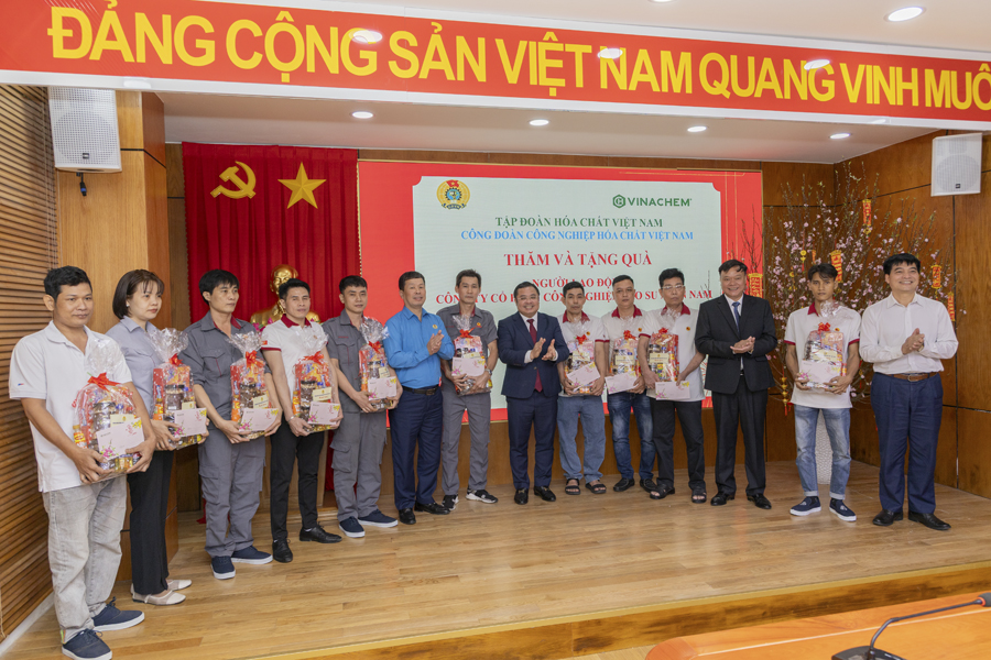Tham gia đoàn công tác có đồng chí Nguyễn Văn Quý – Phó Bí thư Thường trực Đảng ủy Tập đoàn và đồng chí Nguyễn Huy Thông – Chủ tịch Công đoàn Công nghiệp Hóa chất Việt Nam.