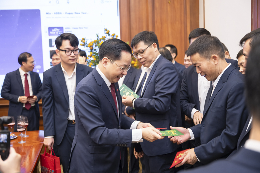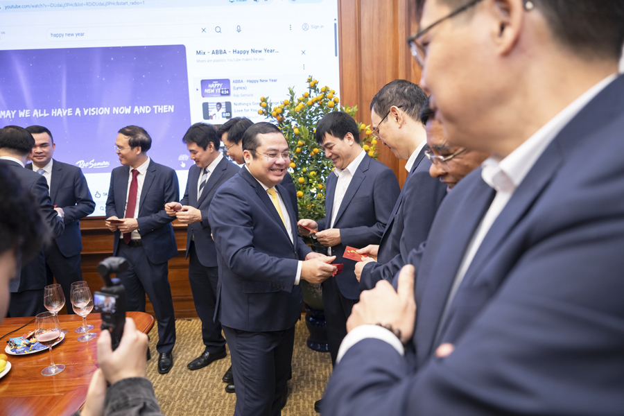 Nhân dịp đầu Xuân Bính Ngọ 2026, lãnh đạo Tập đoàn đã trao những phong bao mừng tuổi tới cán bộ, người lao động Cơ quan Tập đoàn với mong muốn mang đến niềm vui, sự may mắn, khởi đầu thuận lợi cho một năm mới tràn đầy năng lượng, quyết tâm và thành công.