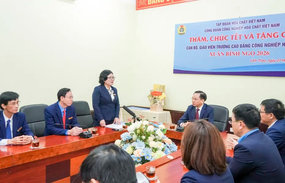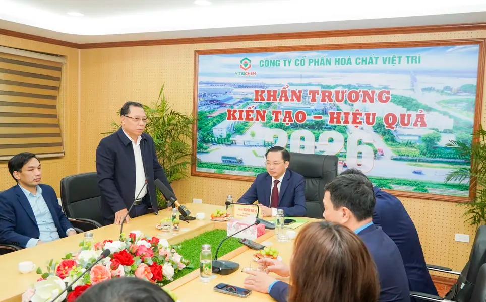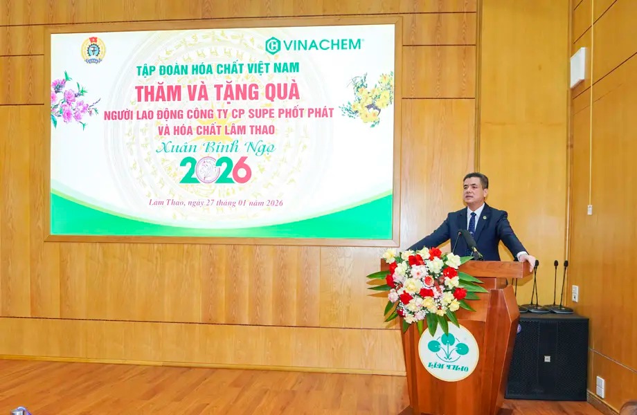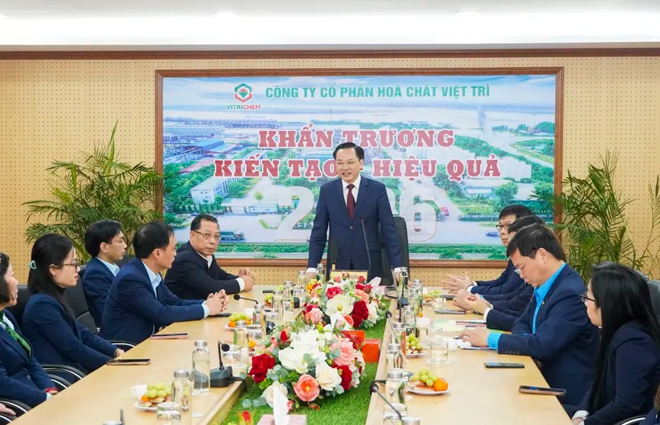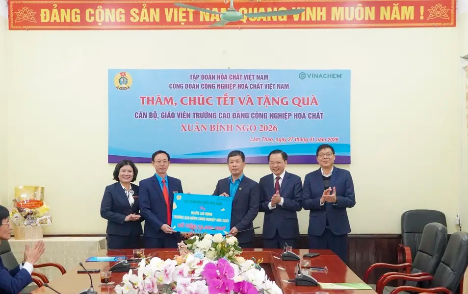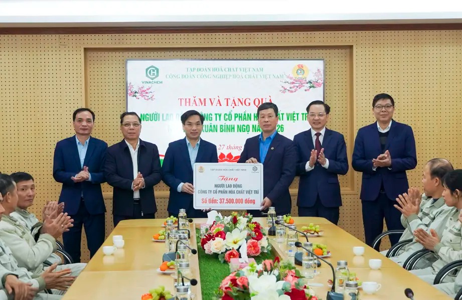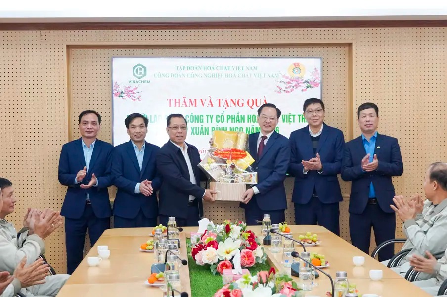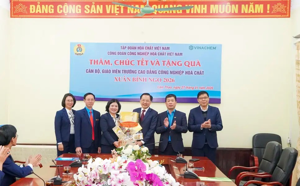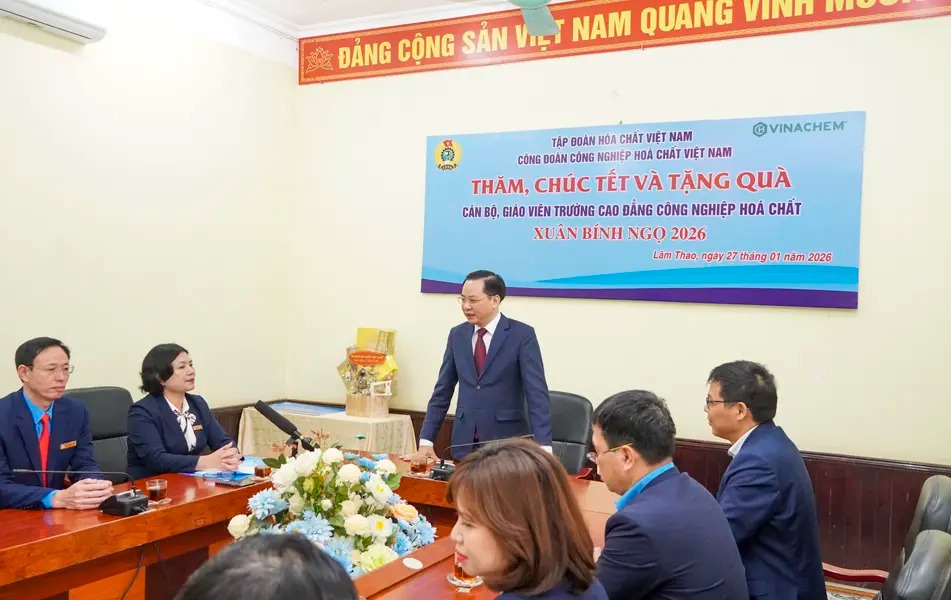 On the morning of January 27, 2026, Comrade Nguyen Huu Tu, General Director of Vietnam National Chemical Group (VINACHEM), along with a working delegation, visited, extended Tet greetings, and presented gifts to workers and employees at Viet Tri Chemical JSC, the College of Chemical Industry, and Lam Thao Fertilizers and Chemicals JSC on the occasion of the Binh Ngo Spring.