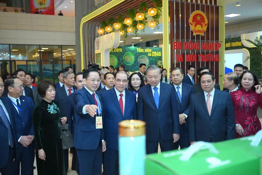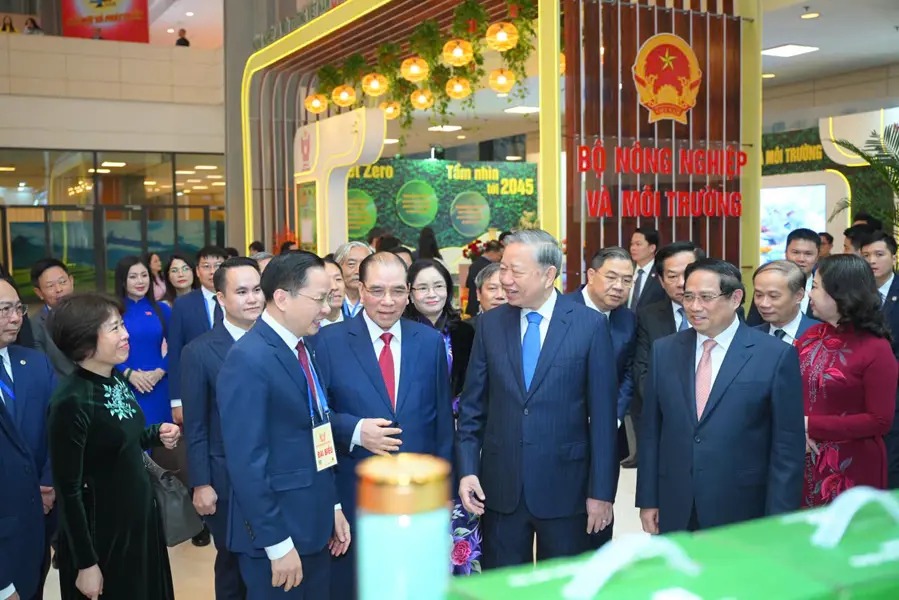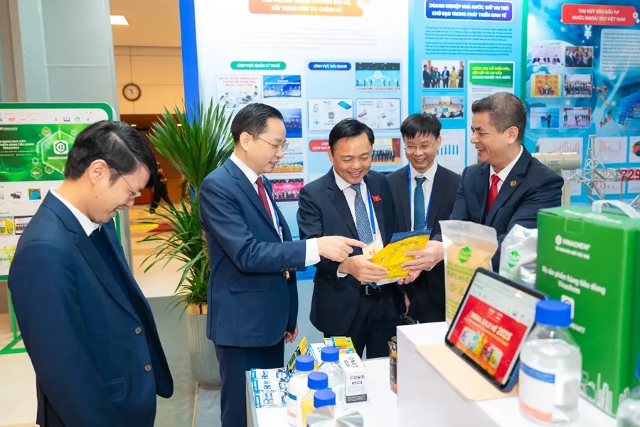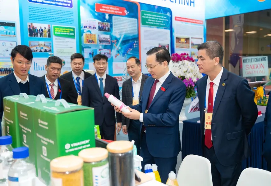Within the framework of the Congress, exhibition booths from ministries, sectors, localities, and large enterprises introduced typical achievements and prominent initiatives in the patriotic emulation movement associated with the tasks of socio-economic development, science and technology, innovation, and digital transformation. In particular, the VinachemMart exhibition booth of the Vietnam National Chemical Group (Vinachem) was honored to welcome General Secretary To Lam and Prime Minister Pham Minh Chinh to visit, encourage, and listen to reports on the Group's operational results.