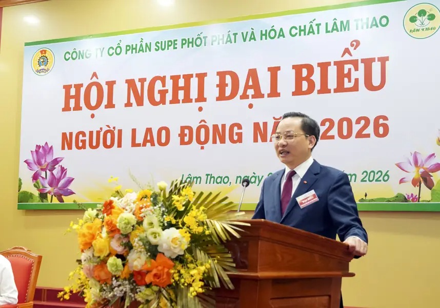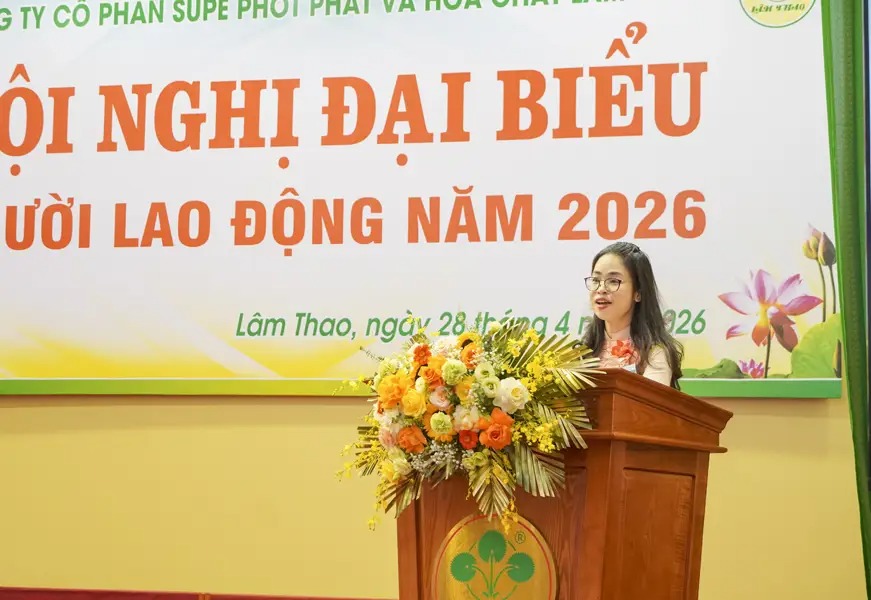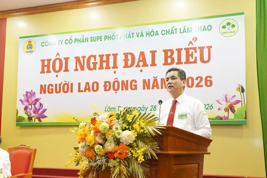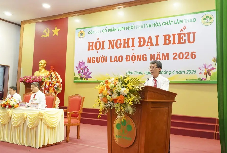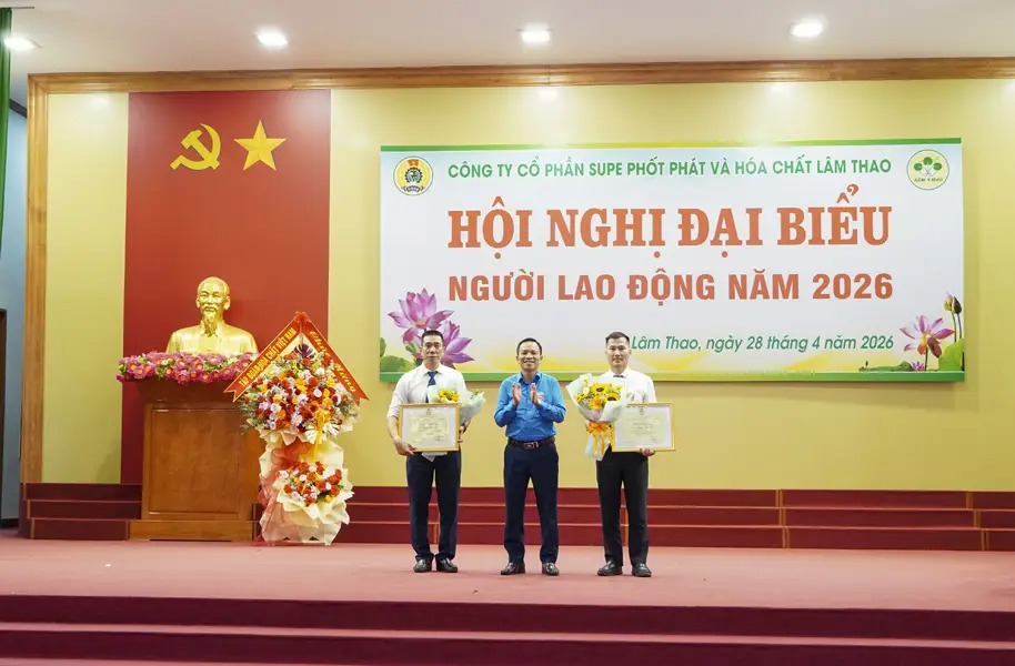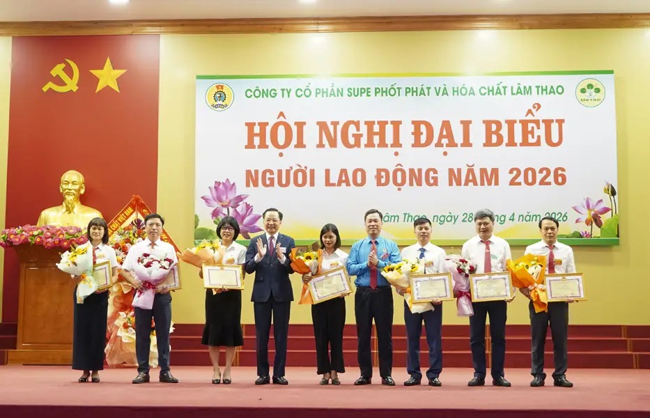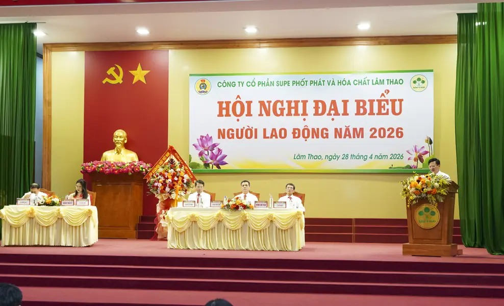On April 28, 2026, Lam Thao Superphosphate and Chemicals Joint Stock Company successfully held its 2026 Employee Conference, attended by Mr. Nguyễn Hữu Tú – Deputy Party Secretary, Member of the Board of Members, and CEO of Vietnam National Chemical Group; Mr. Nguyễn Huy Thông – President of the Vietnam Chemical Industry Trade Union; Mr. Đỗ Ngọc Anh – Vice President of the Phu Tho Provincial Labor Federation; along with 460 delegates representing nearly 2,000 officers and employees of the Company.