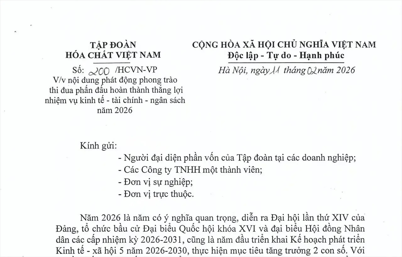 On February 12, 2026, the General Director of the Vietnam National Chemical Group signed Decision No. 86/QĐ-HCVN appointing Mr. Vi Xuan Hai – Deputy Head of the Group’s Planning and Business Department – to concurrently hold the position of Deputy Director of the Chemical Trading and Services Center.SEE MORE12:18 PM @ 12/02/2026