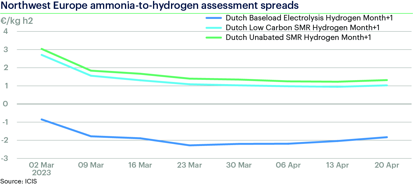 Northwest Europe ammonia-to-hydrogen assessment arrested its recent slide by remaining largely flat in mid-April with premiums to fossil-fuel based methods increasing in the process.