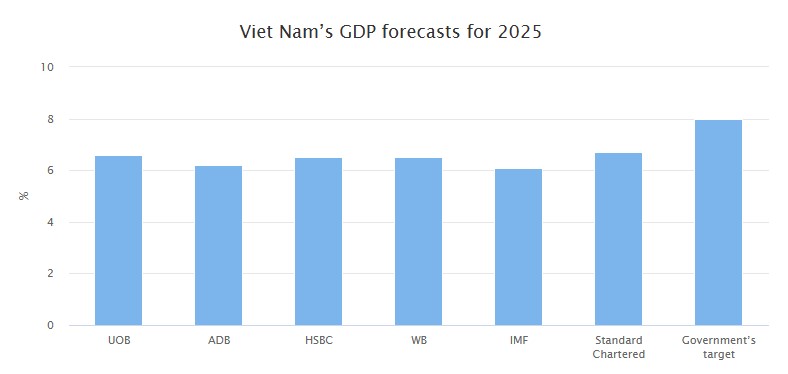 Viet Nam targets a GDP growth rate of approximately 8 percent in 2025 to create momentum for the two-digit growth rate in the 2026-2030 period, Prime Minister Pham Minh Chinh said.