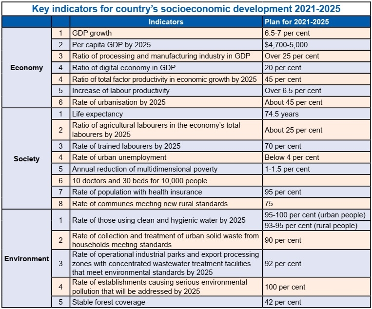 The 13th National Party Congress is expected to set the country’s average annual growth rate of 6.5-7 per cent from now until 2025, when Vietnam may become a higher middle-income nation.