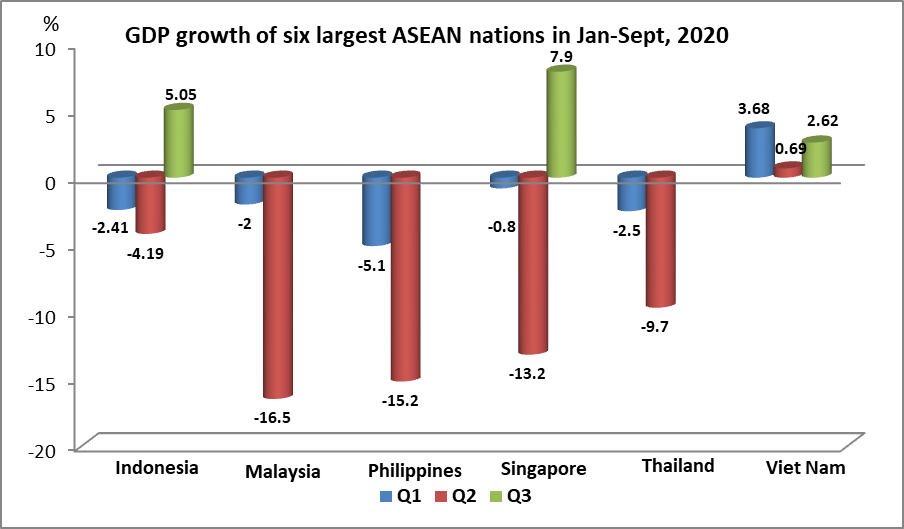 Only three countries in the region, namely Indonesia, Singapore and Viet Nam, witnessed positive growth in the third quarter of 2020.