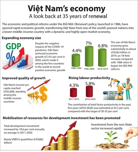 Vietnam's economy has gained many important and comprehensive achievements in the 2016-20 period, helping highlight the country’s success in 35 years of Doi moi (Renewal) process.