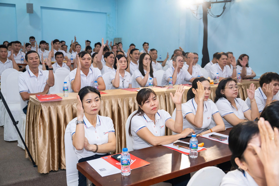 Hội nghị khép lại với lễ phát động phong trào thi đua năm 2026, kêu gọi toàn thể CBCNV phát huy truyền thống đoàn kết, sáng tạo, chung sức đồng lòng, quyết tâm thực hiện thắng lợi các chỉ tiêu kinh tế – xã hội đã đề ra. Nghị quyết Hội nghị được thông qua với sự đồng thuận cao, đặt nền móng vững chắc cho chặng đường phát triển mới của Công ty.