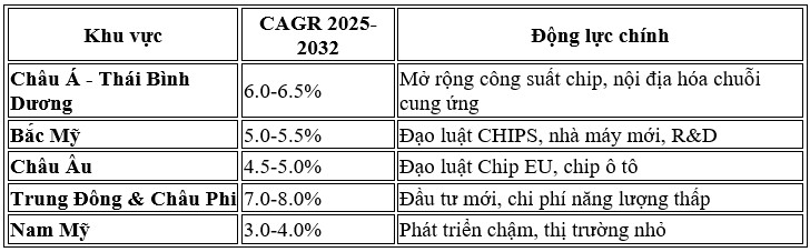 • Khắc axit: CAGR 6.5% (công nghệ 3D, nút tiên tiến)