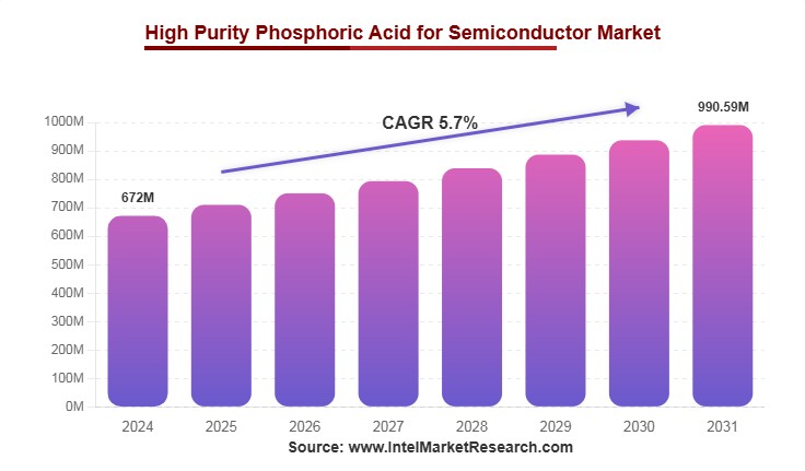 Thị trường axit phosphoric tinh khiết cao (HPPA) toàn cầu dành cho công nghiệp bán dẫn được định giá ở mức 672 triệu USD vào năm 2024 và dự kiến đạt 947 triệu USD vào năm 2032, với tốc độ tăng trưởng kép hàng năm (CAGR) là 5,7% trong giai đoạn dự báo.