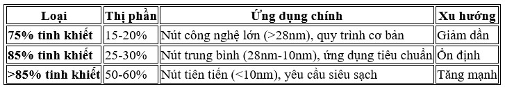 • >85% tinh khiết: Tăng ~8% CAGR (nhu cầu mạnh nhất)