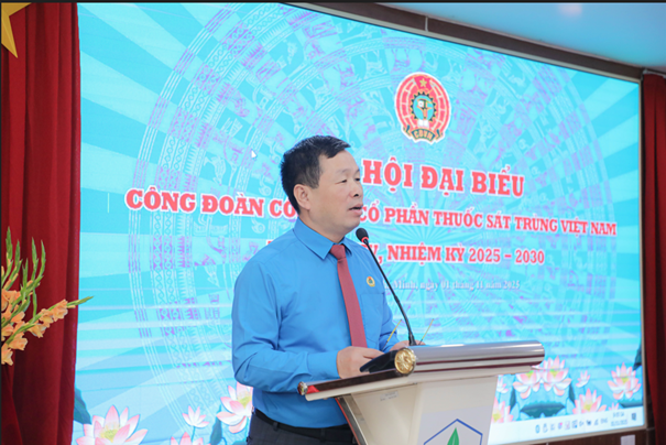 Ông Nguyễn Thân – Bí thư Đảng ủy, Thành viên Hội đồng quản trị, Tổng Giám đốc Công ty Cổ phần Thuốc Sát trùng Việt Nam phát biểu tại Đại hội, ghi nhận và đánh giá cao kết quả Công đoàn VIPESCO đạt được trong giai đoạn 2023–2025.