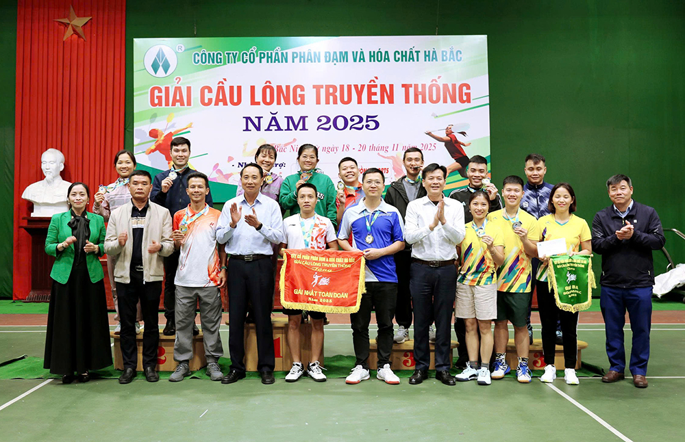 Từ ngày 18/11 - 20/11/2025, Công ty CP Phân đạm và Hoá chất Hà Bắc đã tổ chức thành công Giải Cầu lông truyền thống năm 2025, thiết thực lập thành tích chào mừng Đại hội Công đoàn tỉnh Bắc Ninh lần thứ nhất và Đại hội Công đoàn Công nghiệp Hoá chất Việt Nam lần thứ XII, nhiệm kỳ 2025-2030.