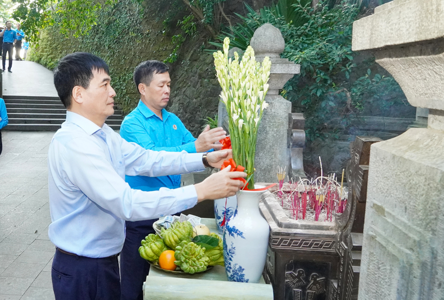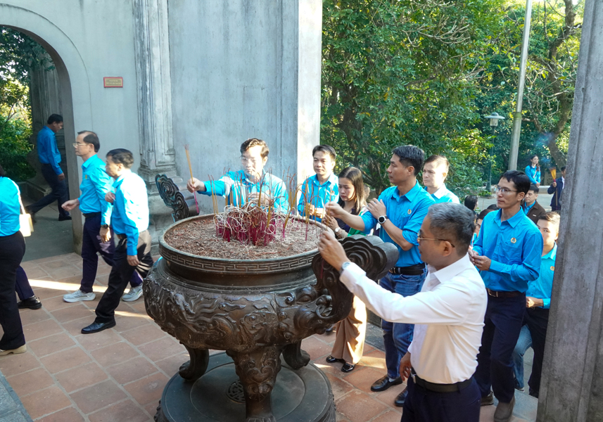 Dẫn đầu đoàn đại biểu có đồng chí Nguyễn Huy Thông - Chủ tịch Công đoàn Công nghiệp Hóa chất Việt Nam; cùng các đồng chí trong Ban Chấp hành, đại diện lãnh đạo các công đoàn cơ sở trực thuộc và các đại biểu chính thức dự Đại hội. Trong không khí linh thiêng nơi đất Tổ, đoàn đã kính cẩn dâng hương bày tỏ lòng biết ơn sâu sắc đối với tổ tiên và cầu mong cho quốc thái dân an, ngành Hóa chất Việt Nam không ngừng phát triển, đội ngũ người lao động luôn mạnh khỏe, đoàn kết và sáng tạo.
