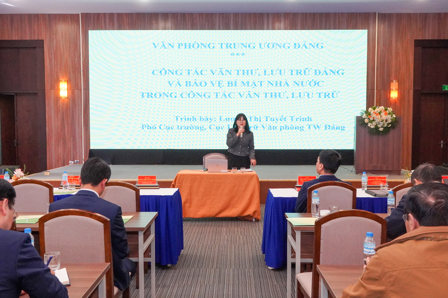 Đồng chí đề nghị trong thời gian tới, xuất phát từ yêu cầu nhiệm vụ công tác xây dựng Đảng, các đồng chí cấp ủy và cán bộ làm công tác Đảng cần tiếp tục tăng cường, nâng cao chất lượng, hiệu lực và hiệu quả công tác với các nhiệm vụ trọng tâm: Tiếp tục quán triệt và thực hiện nghiêm các nghị quyết, chỉ thị, quy định, hướng dẫn của Trung ương về nghiệp vụ công tác xây dựng Đảng; nâng cao nhận thức và trách nhiệm của cấp ủy, tổ chức Đảng, cán bộ, đảng viên về nghiệp vụ công tác xây dựng Đảng; tăng cường, đổi mới công tác lãnh đạo, chỉ đạo của cấp ủy, đặc biệt là cán bộ làm công tác văn phòng Đảng, chủ động cập nhật kiến thức và bồi dưỡng nghiệp vụ để nâng cao trình độ, kỹ năng; thúc đẩy đoàn kết và trách nhiệm, góp phần xây dựng tổ chức Đảng trong sạch, vững mạnh.