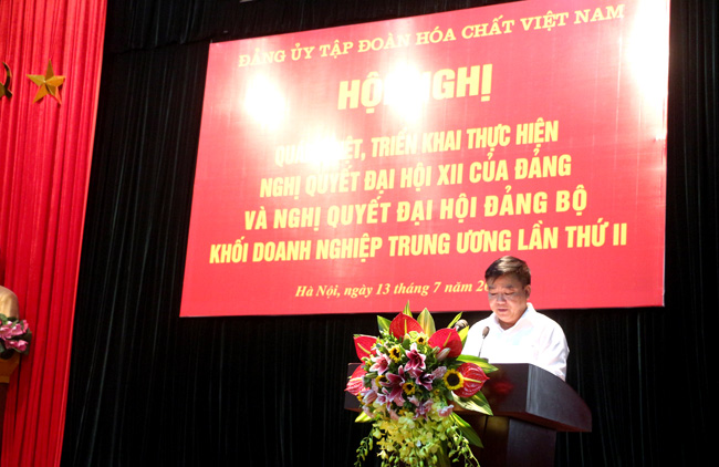 Ngày 13/7, Đảng ủy Tập đoàn Hóa chất Việt Nam đã tổ chức Hội nghị học tập, quán triệt, tuyên truyền và triển khai thực hiện Nghị quyết Đại hội Đảng toàn quốc lần thứ XII và Nghị quyết Đại hội Đảng bộ Khối Doanh nghiệp Trung ương lần thứ II. Tham dự Hội nghị có các đồng chí: PGS.TS Ngô Văn Thạo - Vụ trưởng, Ban Tuyên giáo Trung ương; Lê Văn Long - Phó Trưởng ban Tuyên giáo Đảng ủy Khối Doanh nghiệp Trung ương; Nguyễn Anh Dũng- Ủy viên BCH Đảng Bộ Khối DN Trung ương, Bí thư Đảng ủy, Chủ tịch HĐTV Tập đoàn Hóa chất Việt Nam; Nguyễn Văn Quý - Phó Bí thư Thường trực Đảng ủy Tập đoàn; các đồng chí ủy viên HĐTV; Kiểm soát viên, Phó TGĐ Tập đoàn; các đồng chí Ủy viên Ban chấp hành Đảng bộ Tập đoàn; Ủy ban Kiểm tra, cán bộ chuyên trách, cán bộ kiêm nhiệm làm công tác Đảng tại các đảng bộ, chi bộ trực thuộc và toàn thể đảng viên Công ty mẹ -Tập đoàn.