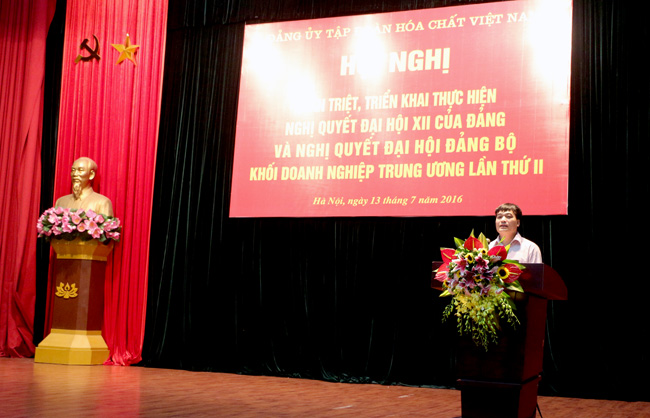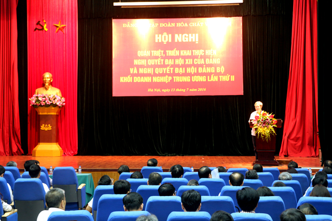 Phát biểu khai mạc Hội nghị, đồng chí Nguyễn Anh Dũng, Bí thư Đảng ủy, Chủ tịch Hội đồng thành viên Tập đoàn Hóa chất Việt Nam khẳng định, học tập, quán triệt, tuyên truyền, triển khai thực hiện Nghị quyết Đại hội lần thứ XII của Đảng là một nhiệm vụ trọng tâm trong năm 2016. Đây là đợt sinh hoạt chính trị sâu rộng, có ý nghĩa và tầm quan trọng đặc biệt nhằm tạo sự chuyển biến về nhận thức, thống nhất về ý chí và hành động trong Đảng, tạo sự đồng thuận cao trong nhân dân, cổ vũ và động viên toàn Đảng, toàn dân và toàn quân phát huy tinh thần yêu nước, ý chí tự lực, tự cường và sức mạnh toàn dân tộc, thực hiện thắng lợi Nghị quyết Đại hội XII của Đảng.