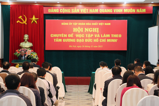 Thực hiện Chỉ thị số 03-CT/TW ngày 14 tháng 5 năm 2011 của Bộ Chính trị và Kế hoạch số 107-KH/ĐU ngày 06/11/2015 của Đảng ủy Tập đoàn Hóa chất Việt Nam, sáng ngày 26/11/2015, Đảng ủy Tập đoàn Hóa chất Việt Nam đã tổ chức Hội nghị chuyên đề “Học tập và làm theo tấm gương đạo đức Hồ Chí Minh” cho các đồng chí Ủy viên Ban chấp hành, Ủy ban Kiểm tra, cán bộ chuyên trách, cán bộ kiêm nhiệm làm công tác Đảng tại các đảng bộ, chi bộ trực thuộc và toàn thể đảng viên Công ty mẹ -Tập đoàn. Chuyên đề này là nội dung cơ bản của đợt sinh hoạt chính trị trong toàn Đảng bộ Tập đoàn và các đảng bộ, chi bộ trực thuộc.
