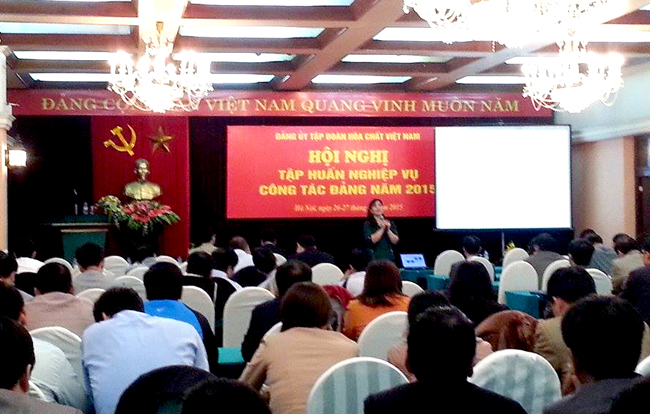Trong ngày 26 và 27 tháng 11 năm 2015, tại Hà Nội, Đảng bộ Tập đoàn Hóa chất Việt Nam đã tổ chức Hội nghị tập huấn công tác đảng năm 2015 cho các đồng chí ủy viên BCH, UBKT và các Ban Đảng ủy Tập đoàn; các đồng chí ủy viên BCH các đảng bộ trực thuộc; các đồng chí bí thư, phó bí thư, chi ủy viên các chi bộ trực thuộc; các cán bộ thường trực, giúp việc trong công tác đảng tại các đảng ủy trực thuộc; các đồng chí là bí thư các chi bộ, đảng bộ bộ phận trực thuộc đảng bộ các cơ sở.