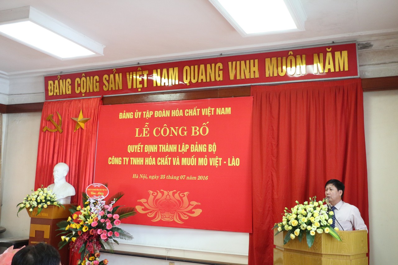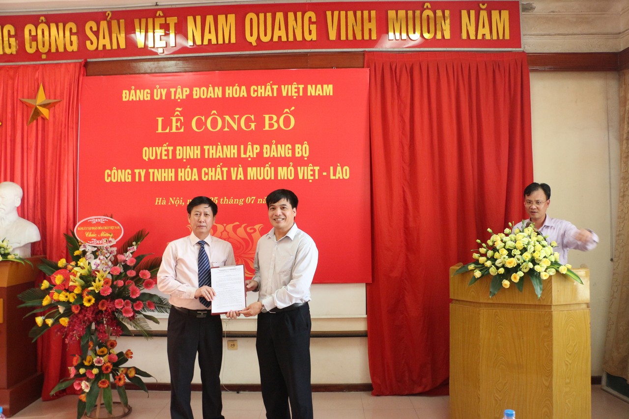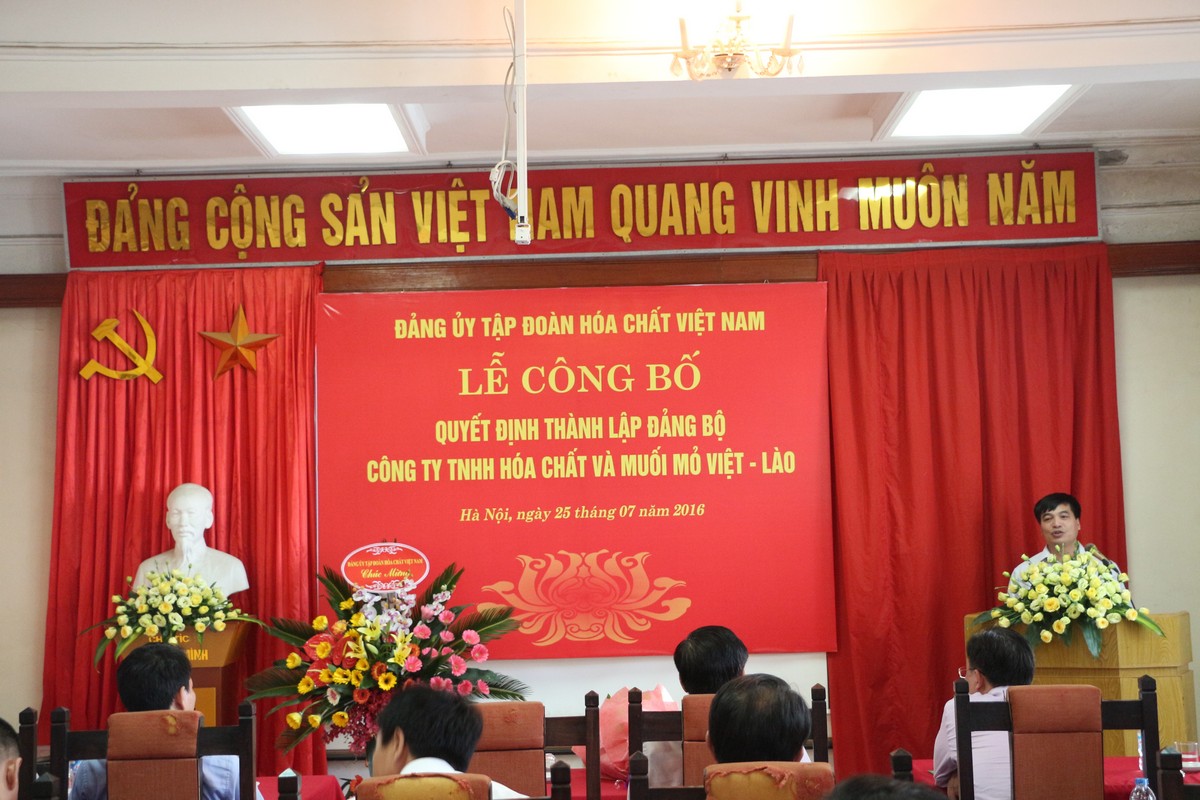 Ngày 25/7/2016, Đảng bộ Tập đoàn Hóa chấtViệt Nam đã công bố quyết định thành lập Đảng bộ công ty TNHH hóa chất và muối mỏ Việt Lào (Vinachemsalt). Ban Thường vụ Đảng ủy Tập đoàn đã chỉ định Ban chấp hành Đảng bộ Công ty gồm 05 đồng chí; đồng chí Nguyễn Huy Cương, Tổng giám đốc Công ty được chỉ định giữ chức Bí thư Đảng bộ. Đang bộ Công ty có 3 chi bộ trực thuôc và là 1 trong 7 Đảng bộ cơ sở trực thuộc Đảng bộ Tâp đoàn.