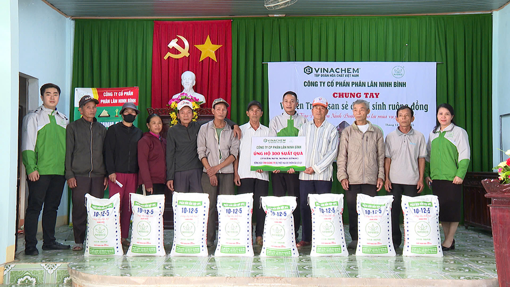 Đại diện Công ty CP Phân lân Ninh Bình cho biết, trong thời gian qua, đơn vị luôn đồng hành cùng bà con nông dân trong sản xuất nông nghiệp và thường xuyên thực hiện các chương trình thiện nguyện. Quảng Trị và thành phố Huế là 2 địa phương thường xuyên phải gánh chịu thiệt hại trong sản xuất nông nghiệp do thiên tai gây ra. Món quà lần này là tấm lòng của cán bộ công nhân viên Công ty CP Phân lân Ninh Bình; mong bà con lấy đó làm động lực để tái thiết sản xuất và sớm ổn định cuộc sống.