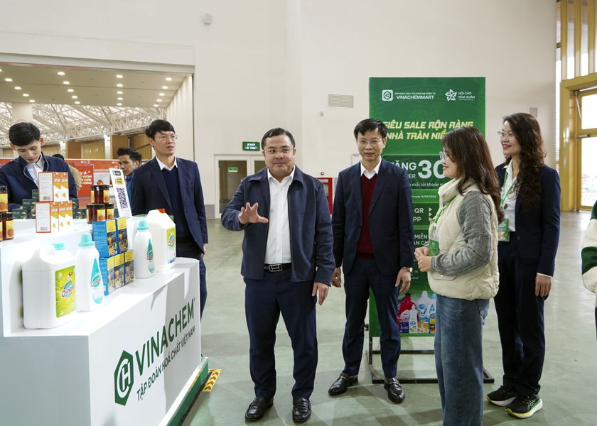 Tại đây, đồng chí Bí thư Đảng ủy, Chủ tịch Hội đồng thành viên Tập đoàn đã trực tiếp nghe báo cáo về công tác tổ chức, hoạt động quảng bá thương hiệu cũng như việc giới thiệu các sản phẩm tiêu biểu của VINACHEM và các đơn vị thành viên. Trong đó, nhiều dòng sản phẩm phân bón, hóa chất phục vụ nông nghiệp, công nghiệp và tiêu dùng được trưng bày, đáp ứng nhu cầu thị trường trong dịp Tết Nguyên đán.