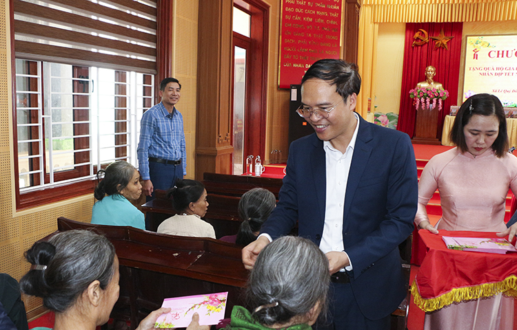 Phó Bí thư Đảng ủy Quốc hội cũng đề nghị cấp ủy, chính quyền địa phương tiếp tục quan tâm sát sao hơn nữa tới đời sống của người dân, nhất là người cao tuổi, hộ nghèo và các gia đình chính sách; đồng thời mong bà con phát huy truyền thống quê hương, chấp hành tốt chủ trương của Đảng, chính sách pháp luật của Nhà nước, tích cực lao động sản xuất, cùng chung tay xây dựng địa phương ngày càng phát triển.