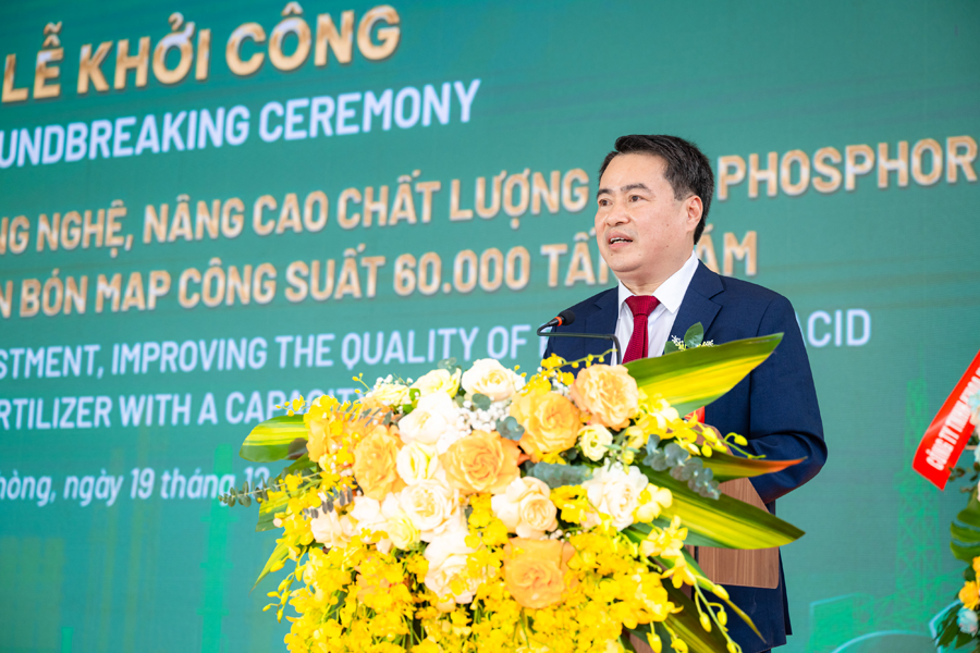 Phát biểu tại lễ khởi công, ông Phùng Quang Hiệp, Bí thư Đảng ủy, Chủ tịch HĐTV Tập đoàn nhấn mạnh: dự án có ý nghĩa chiến lược đặc biệt, không chỉ nâng cao năng lực sản xuất và chất lượng phân bón MAP mà còn là bước đi quan trọng hướng tới hóa chất công nghệ cao và chuỗi giá trị bán dẫn.