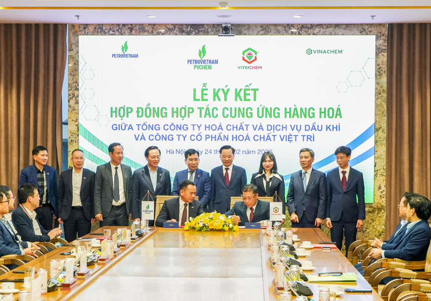 Chiều ngày 24/02/2026, tại Tập đoàn Công nghiệp Năng lượng Quốc gia Việt Nam, đã diễn ra Lễ ký kết Hợp đồng hợp tác cung ứng Xút lỏng (NaOH) cho Nhà máy Lọc hóa dầu Nghi Sơn giữa Tổng Công ty Hóa chất và Dịch vụ Dầu khí – CTCP (PVChem) – đơn vị thành viên của Petrovietnam, và Công ty Cổ phần Hóa chất Việt Trì (Vitrichem) – đơn vị thành viên của Tập đoàn Hóa chất Việt Nam (Vinachem).
