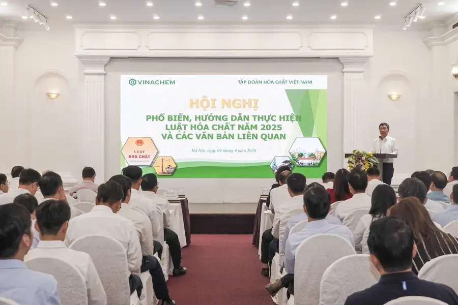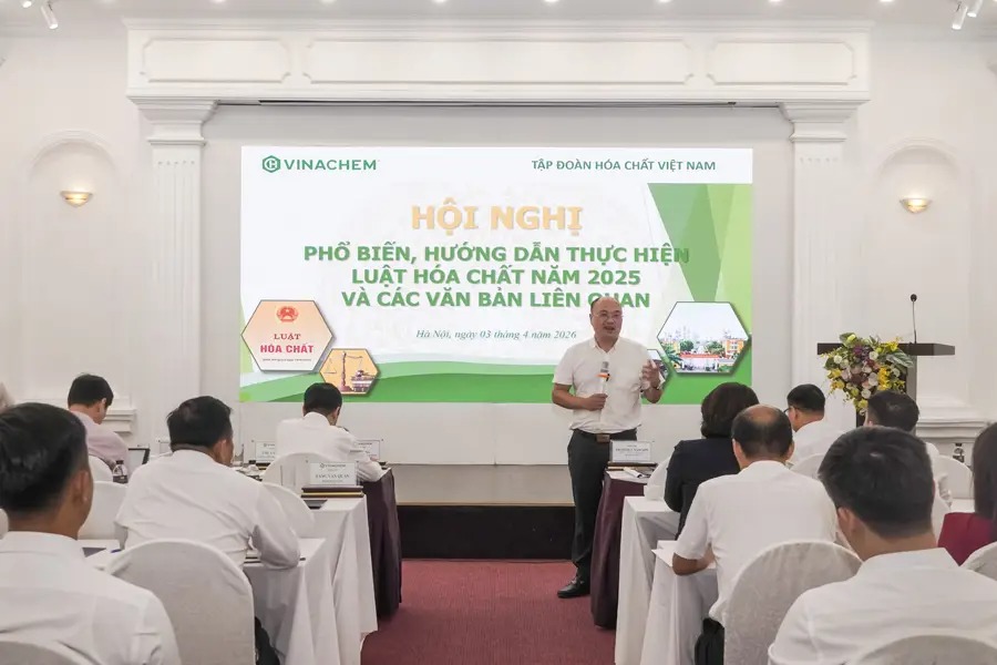 On the morning of April 3, 2026, in Hanoi, the Vietnam National Chemical Group (Vinachem) organized a conference to disseminate and guide the implementation of the 2025 Chemical Law and related documents. The aim was to promptly update and thoroughly communicate new legal regulations to all units within the Group.