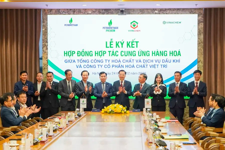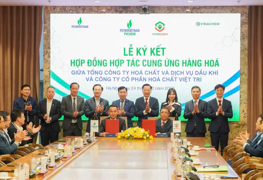 On the afternoon of February 24, 2026, at the headquarters of the Vietnam National Energy Industrial Group, a signing ceremony was held for the cooperation contract to supply Liquid Caustic Soda (NaOH) to the Nghi Son Refinery and Petrochemical (NSRP) plant. The agreement was signed between the PetroVietnam Chemical and Services Joint Stock Corporation (PVChem)—a subsidiary of Petrovietnam—and the Viet Tri Chemical Joint Stock Company (Vitrichem)—a subsidiary of the Vietnam National Chemical Group (Vinachem).