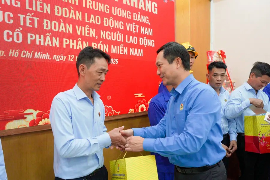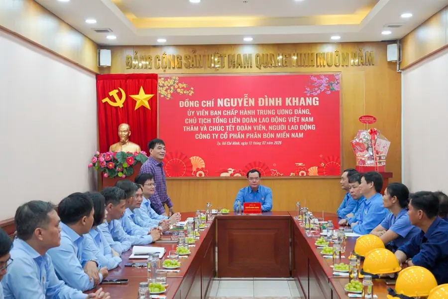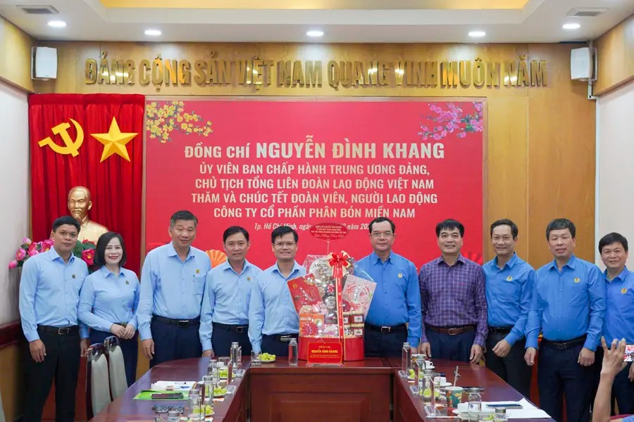 On the occasion of the Lunar New Year (Tet), Comrade Nguyen Dinh Khang, Member of the Party Central Committee and President of the Vietnam General Confederation of Labour, visited, extended New Year greetings, and encouraged officers and employees of Southern Fertilizer Joint Stock Company. Accompanying the delegation was Comrade Le An Hai, President of the Vietnam Industry and Trade Union.