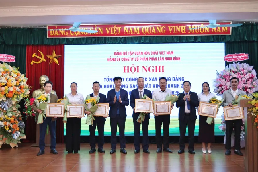 On the morning of January 8, Ninh Binh Phosphate Fertilizer Joint Stock Company (NFC) held a conference to review its Party building work and business production operations in 2025, and to deploy tasks for 2026. Attending and directing the conference were Mr. Nguyen Van Quy – Standing Deputy Secretary of the Party Committee of Vietnam National Chemical Group (Vinachem); Mr. Nguyen Van Luyen – Vice President of Vinachem, along with representatives from various specialized departments of the Group.