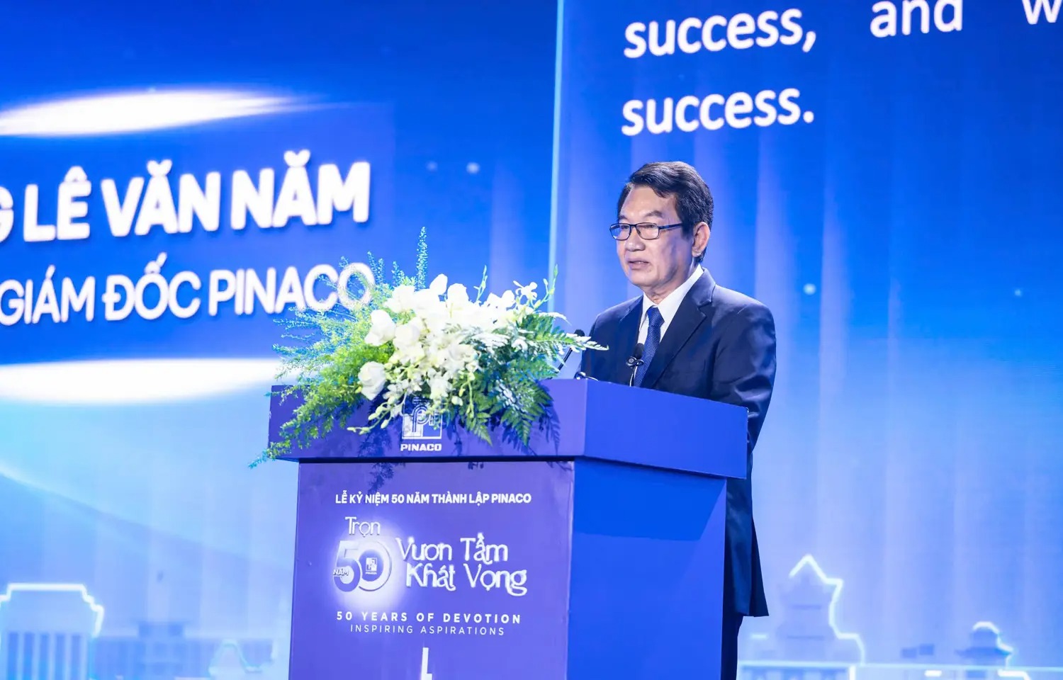The ceremony was attended by Mr. Nguyễn Đình Khang, Member of the Central Party Committee, Minister of Ethnic Affairs and Religion, and former General Director of Vietnam National Chemical Group; Mr. Lê An Hải, President of the Vietnam Industry and Trade Union; Mr. Phùng Mạnh Ngọc, Director of the Chemical Department (Ministry of Industry and Trade); Mr. Phùng Quang Hiệp, Secretary of the Party Committee and Chairman of the Members’ Council of Vietnam National Chemical Group (Vinachem); along with numerous former Vinachem leaders, representatives from departments, agencies, local authorities, partners, customers, and generations of PINACO’s executives and staff.