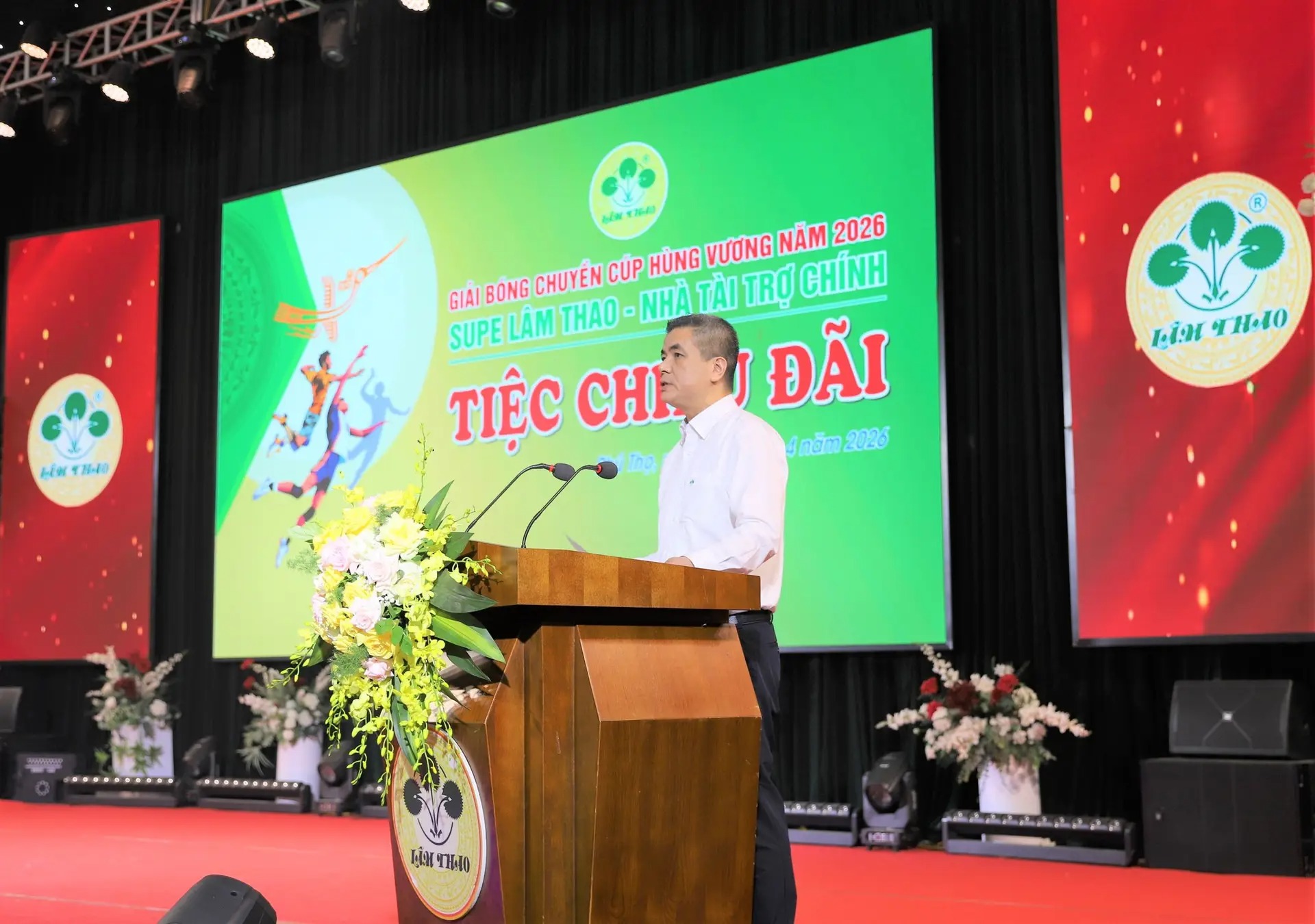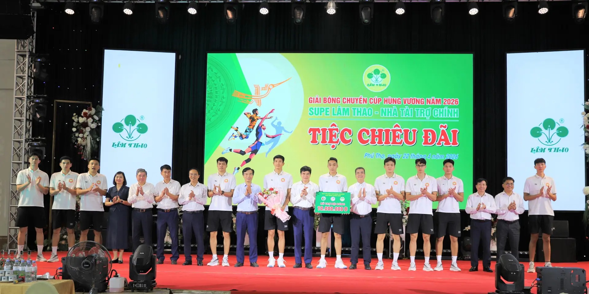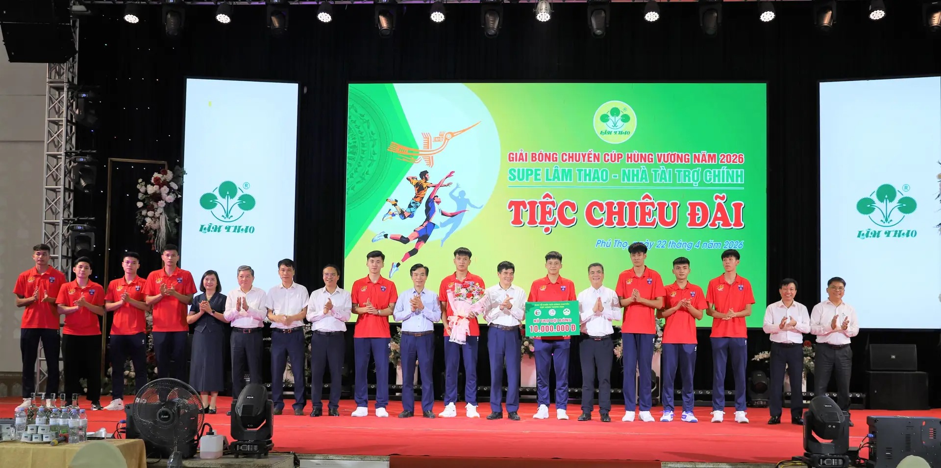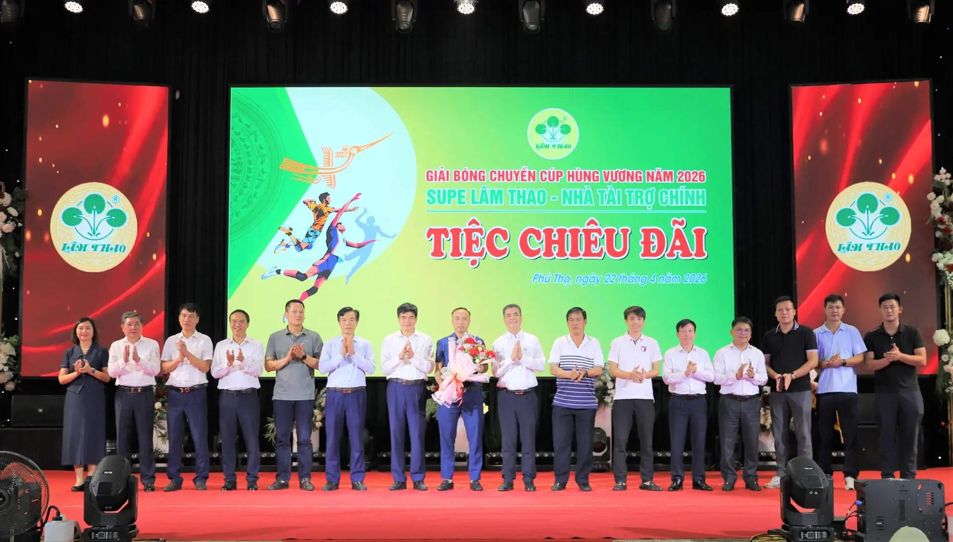 On the evening of April 22, 2026, at the Multipurpose Hall, Lam Thao Superphosphate and Chemicals Joint Stock Company (LAFCHEMCO) hosted a reception for athlete delegations and officials attending the 2026 Hung Vuong Cup Volleyball Tournament—a prominent sporting event in the Land of the Ancestors, with LAFCHEMCO continuing as the main sponsor.