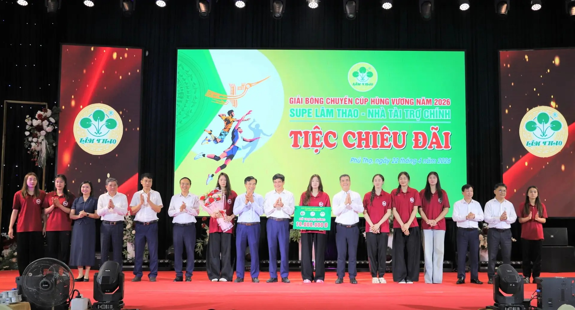 The special banquet welcomed the eight best volleyball clubs that passed the first phase of the 2026 National Championship to compete in the Hung Vuong Cup. A highlight of the program was the honoring ceremony, where flowers and financial support were presented to the clubs—not only recognizing their efforts but also providing practical encouragement and motivation for the athletes ahead of important matches.