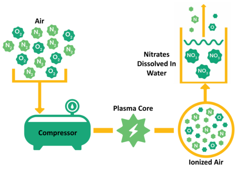 NTP Technologies develops non-thermal plasma technology to generate water-soluble nitrates from the air for sustainable, on-site fertilizer production.