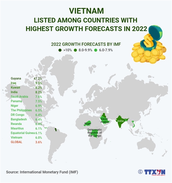 With such macroeconomic highlights, it seems that the Vietnamese economy is on course to surpass its 2022 growth target of 6.0 - 6.5 per cent. Recently, the Singapore-based United Overseas Bank (UOB) revised up its 2022 GDP growth forecast for Việt Nam to 7 per cent from 6.5 per cent.