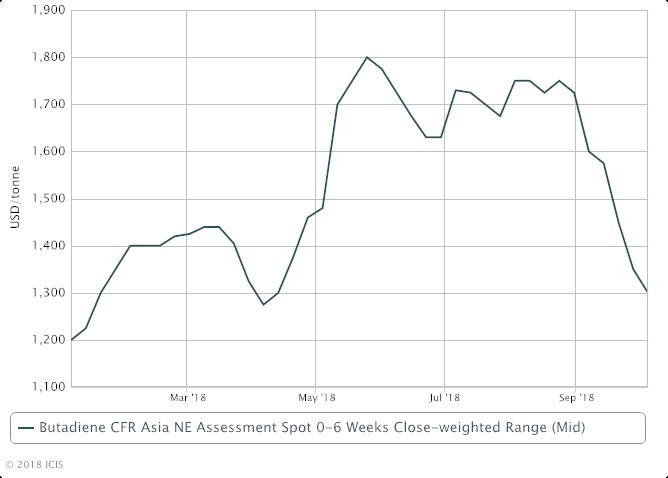 “There may still be room for BD to fall as ... supply exceeds demand in Asia, as there are still several spot cargoes available for November,” a China-based downstream synthetic rubber maker said.