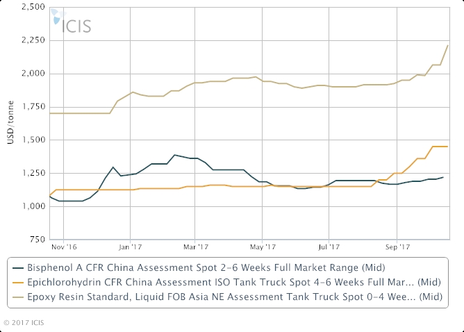 LER producers have been increasing spot offers for October and November cargoes amid recent gains in feedstock epichlorhydrin (ECH) and bisphenol-A (BPA) prices.