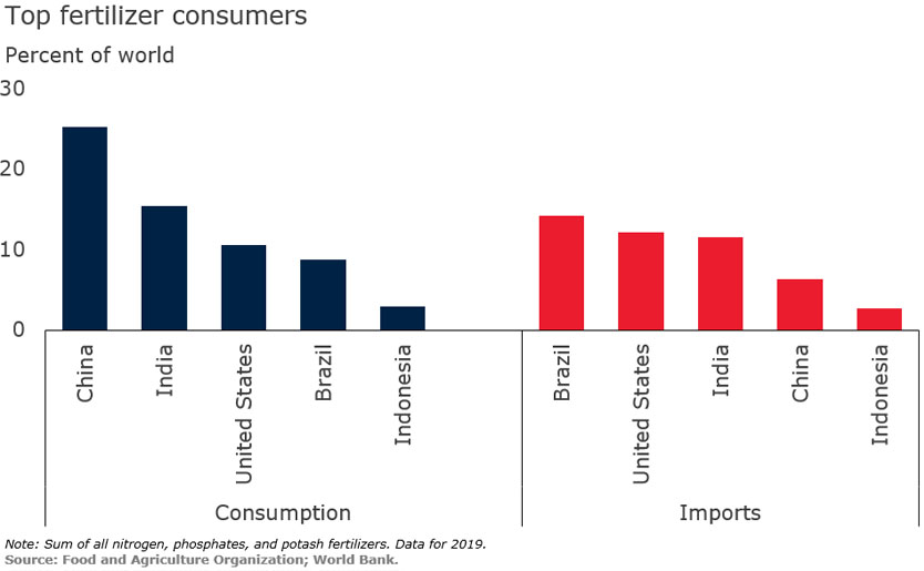 Robust demand. Global fertilizer consumption has remained strong throughout the COVID-19 pandemic. Brazil and the United States have allocated record acreage to soybean (a fertilizer-intensive crop). Demand is also strong in China due to increased feed use, especially maize and soybean meal, as the country is rebuilding its hog herd population following the African swine fever outbreak. Fertilizers are now at their least affordable levels since the 2008 global food crisis, despite higher crop prices, which may limit fertilizer use.