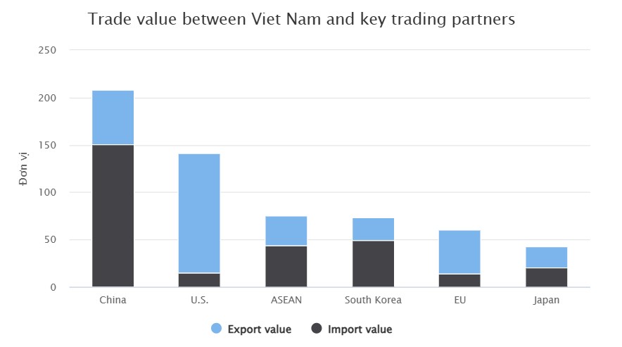 The U.S. remained the biggest importer of Vietnamese goods with US$126.2 billion while China was the largest supplier with US$150.9 billion./.
