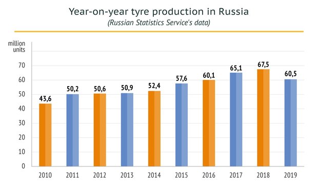 By the Russian Trade Ministry’s estimate, car production in 2020 can reduce by 30%. The fall in the automotive industry gave rise to a reduction in the production in the tyre industry inextricably linked with car manufacturing. Like other enterprises, tyre factories suspended their operation at the peak of the pandemic, which significantly reduced production volumes. In January-May 2020, according to official statistics, 19,9 million tyres, or by 18% less than during the analogous period last year, were made in Russia. In May alone, tyre production volumes in the country turned out 40% below the May 2019 level.