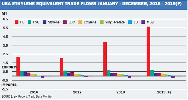 This was more than 40% of the total production increase over the period, as reported by the American Chemistry Council. And 2019 will see further major increases in volume with 4.25 million tonnes of new ethylene capacity due to start-up, alongside full-year output from last year’s start-ups.