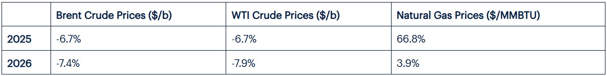 The following shows the year-on-year changes in US oil and natural gas prices that are forecast by ICIS.